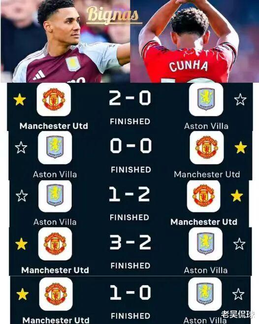之所以说曼联是维拉的苦主,因为他们在英超历史上就鲜有击败曼联的纪录,即便是在自己的主场。而从曼联的角度来看,维拉是所有英超球队中,他们对阵时抢分第二多的球队(第一是埃弗顿)。事实上,从1995年到2025年这30年间,维拉在自己的主场只击败过曼联两次,巧合的是,两场比分都是3比1。今晚,他们将有机会再一次复制这个比分!