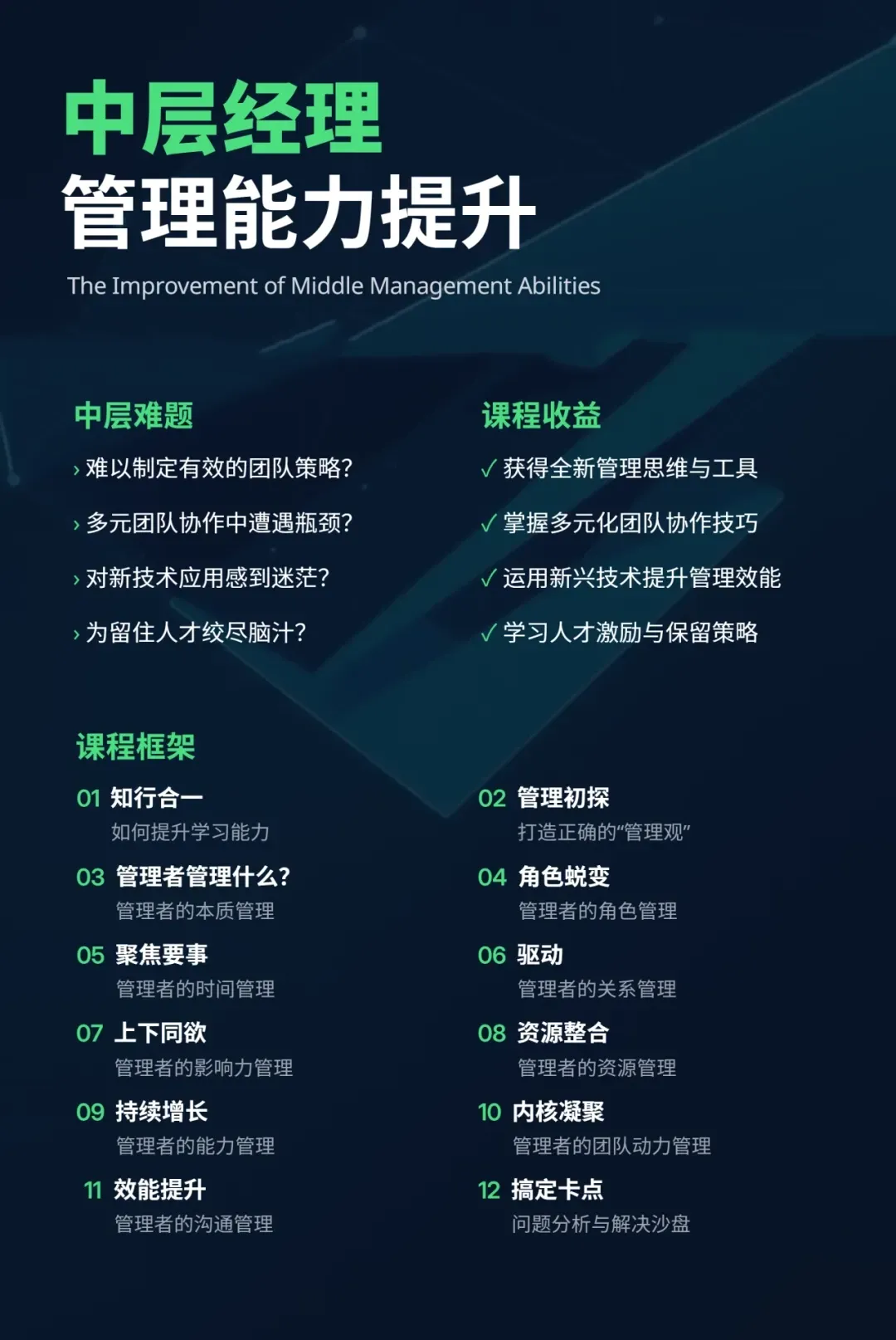 管理的本质是通过他人实现目标,而管理能力的本质是自我修行与赋能他人的结合。愿每一位中层经理都能在管理之路上持续精进,既成就团队,也实现自我成长。