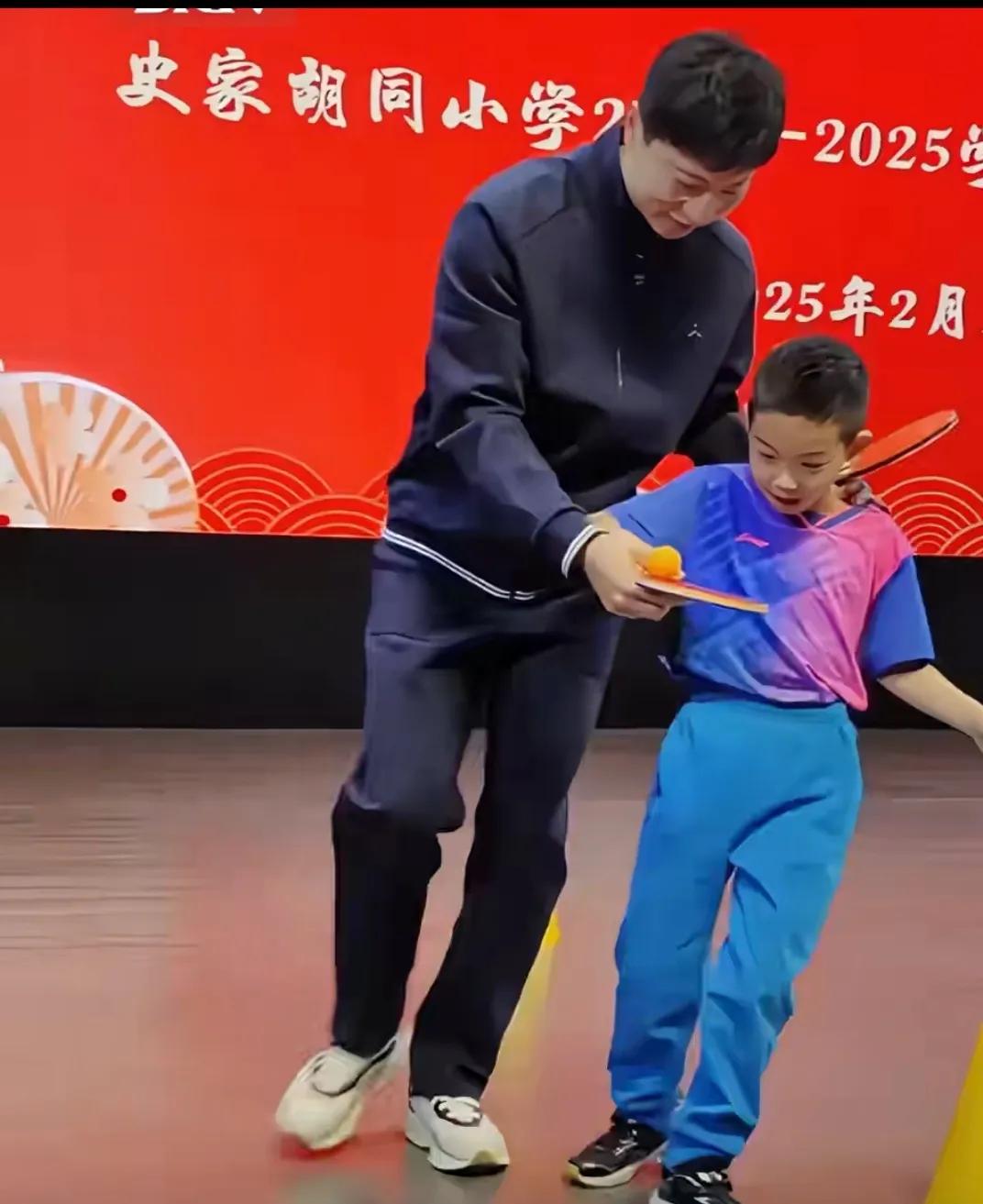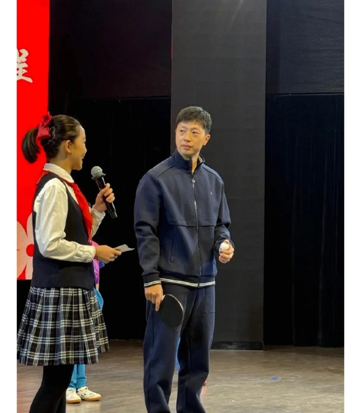乒乓球亚洲杯马龙没有参加,不参加比赛的马龙活动还是不少,今天则去了他儿子所在的学校参加开学典礼活动,还手把手的教儿子一起用球拍带球,笑死了,就在马龙旁边,王皓的儿子嗖的一下子就过去了。