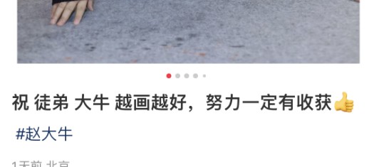 并且配文说“祝徒弟大牛越画越好,努力一定有收获”。