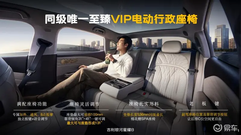 吉利银河星耀8远航家系列秉承“豪华平权,起步即旗舰”的理念,将越级舒享体验带入中高级轿车市场,让豪华触手可及。