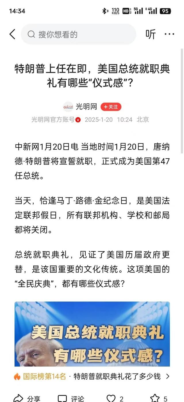 这一天是美国重要的一天,也是特朗普人生当中重要的一天,这是特朗普第二次当选美国总统了,可见他在美国的支持度有多么的高。当天来参加特朗普就职典礼的人也是数不胜数,各界的领军人物齐聚现场,个个都身居高位。