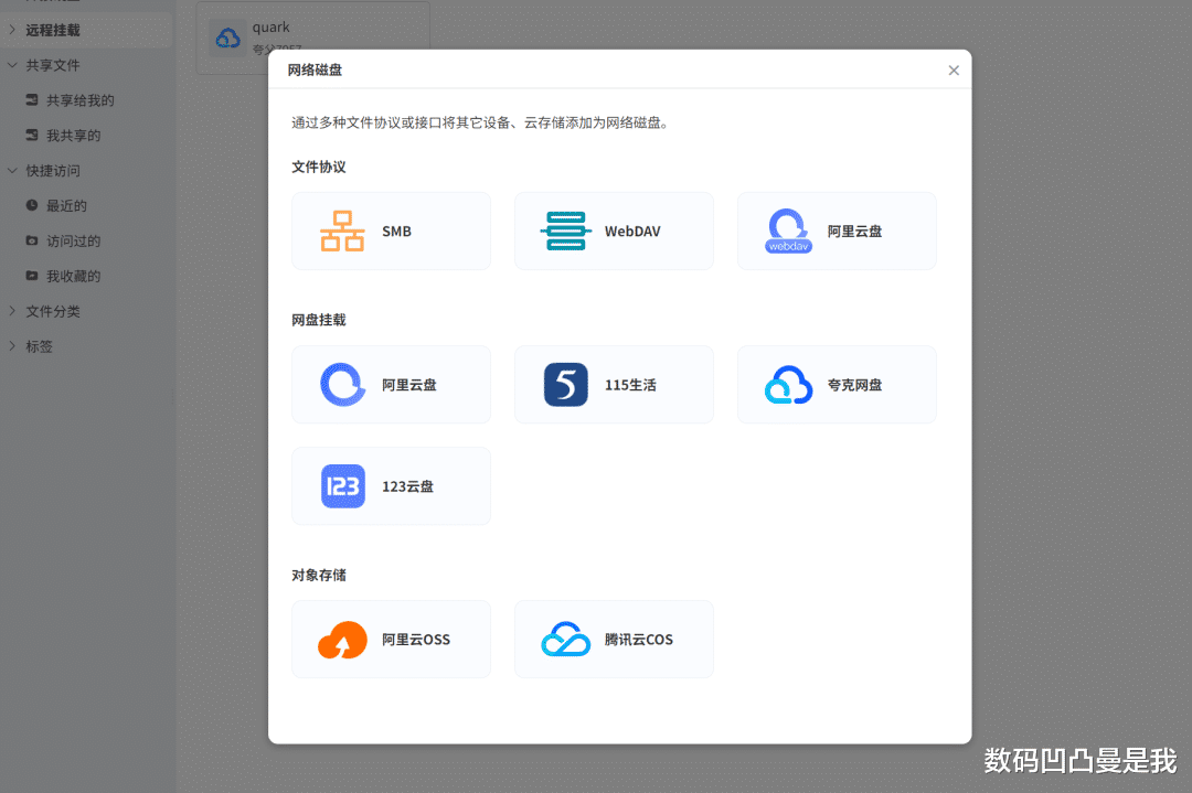 网盘备份目前支持百度网盘、阿里云盘、天翼云盘、OneDrive、移动云盘、夸克网盘、115、123等主流网盘,同时也可在个人空间的远程挂载添加网盘挂载。