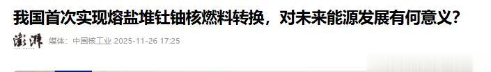 澎湃新闻——我国首次实现熔盐堆钍铀核燃料转换,对未来能源发展有何意义? 2025-11-26