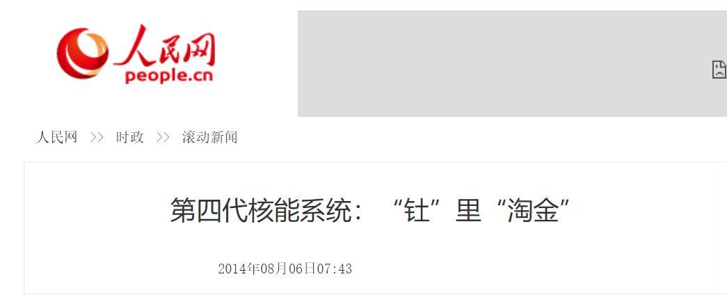 人民网——第四代核能系统:“钍”里“淘金” 2014-08-06