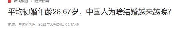信息来源:中国新闻网-《平均初婚年龄28.67岁,中国人为啥结婚越来越晚?》