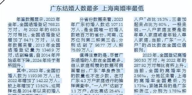 信息来源:羊城晚报-《广东结婚人数最多 上海离婚率最低》