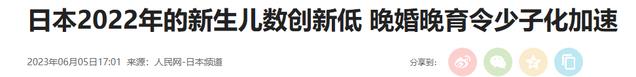 信息来源:人民网-《日本2022年的新生儿数创新低 晚婚晚育令少子化加速》