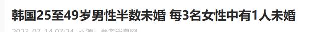 信息来源:参考消息网-《韩国25至49岁男性半数未婚 每3名女性中有1人未婚》