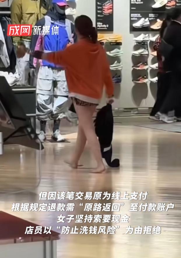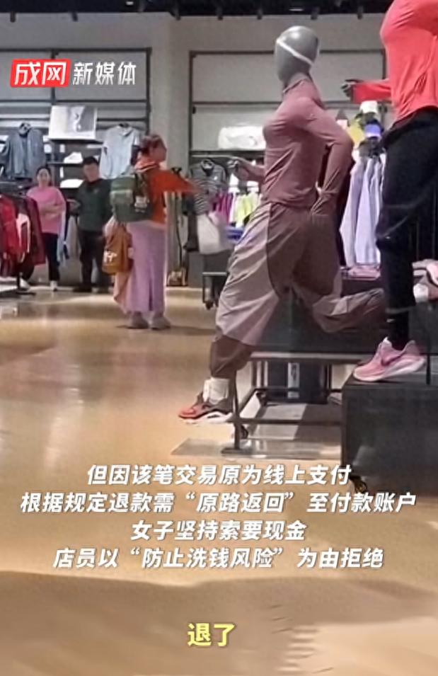 工作人员在审核无误后同意退款,按照门店规定,这笔钱会原路退还到付款账户,按理说这是个省时省力的方法,可女子却不愿意,坚持索要现金,不允许退还到原账户。