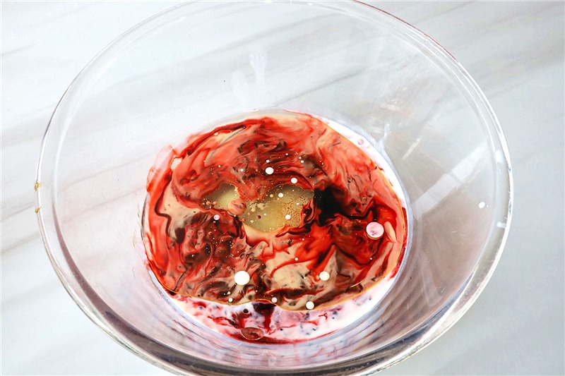 传统红丝绒蛋糕是用红曲粉制作的,不过,用红曲粉色泽偏暗,口感略苦。我这次是直接用的红丝绒精华液来制作,色彩靓丽多了,关键,做法也更简单。