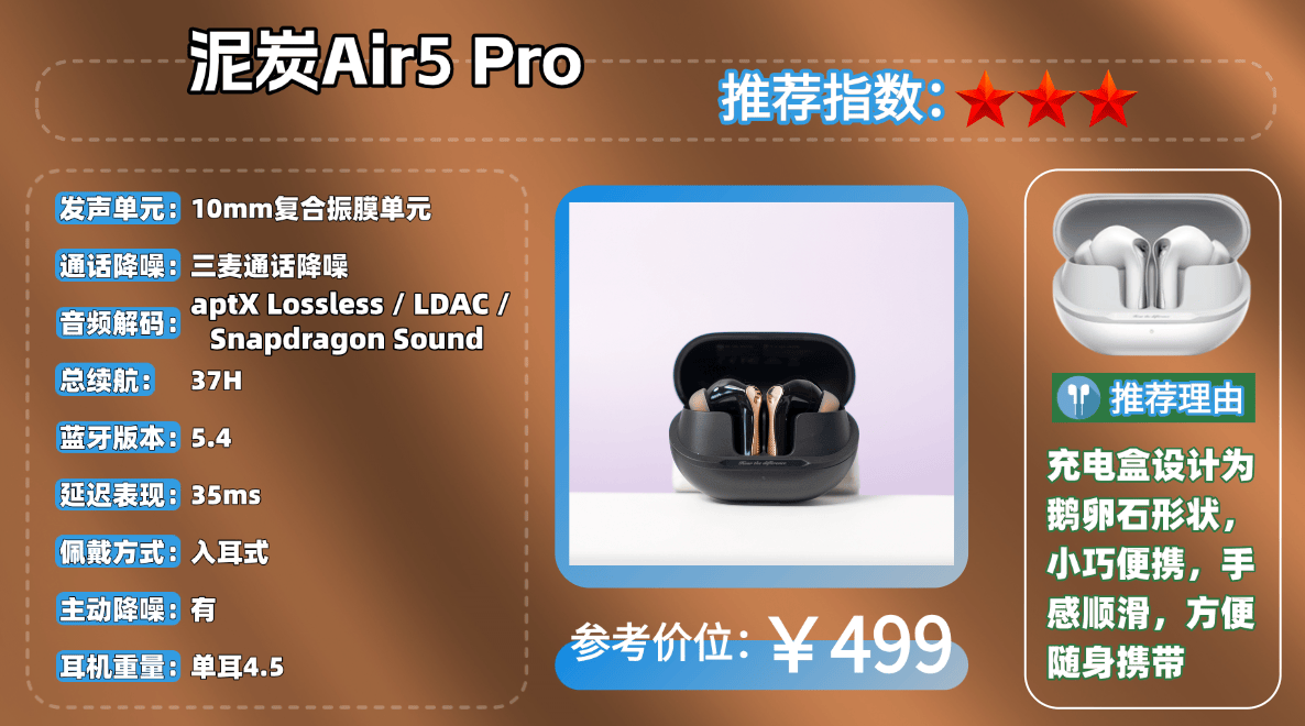 综合主流爆款5:泥 炭A ir5 Pro蓝牙耳机