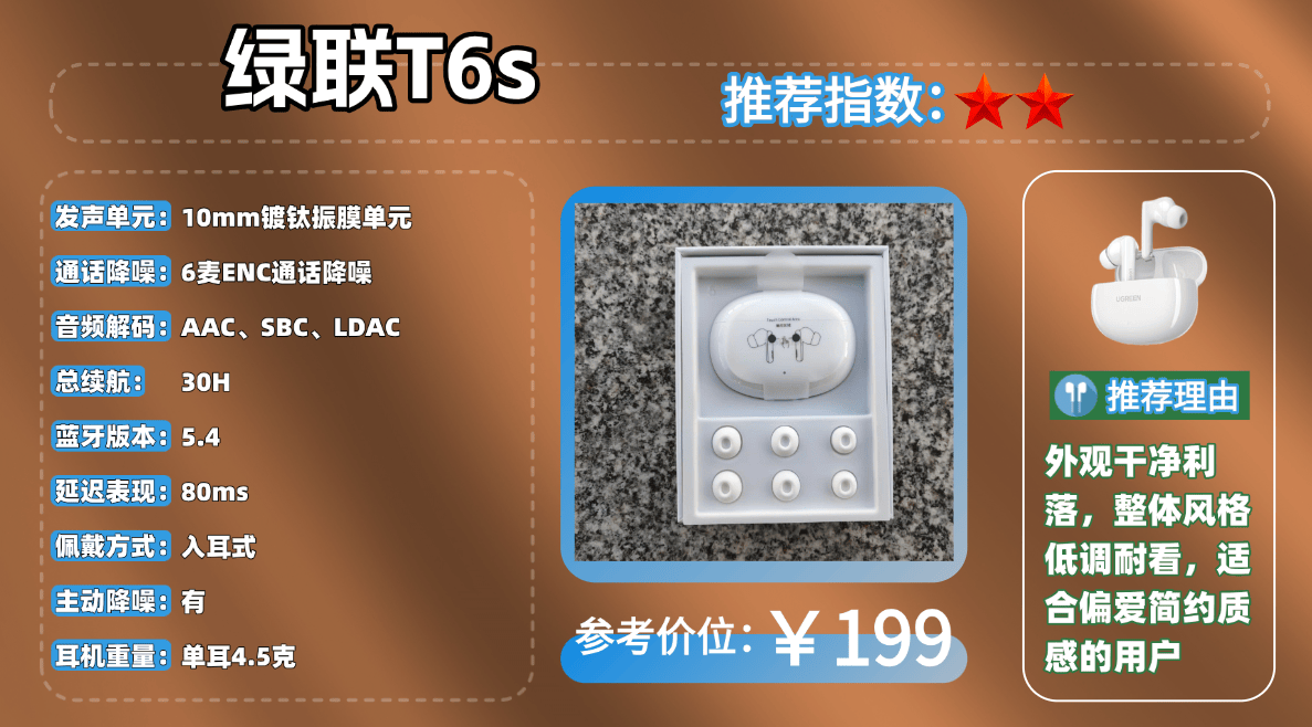 综合主流爆款7:绿 联T 6s蓝牙耳机