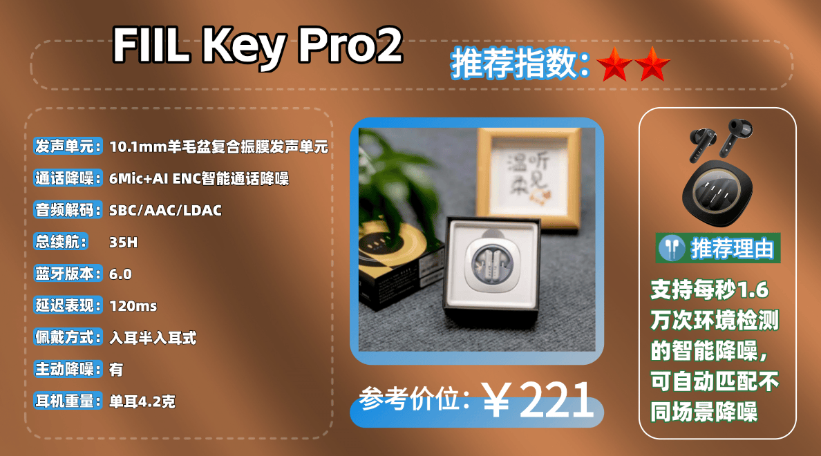 综合主流爆款4:F IIL K ey Pro2蓝牙耳机