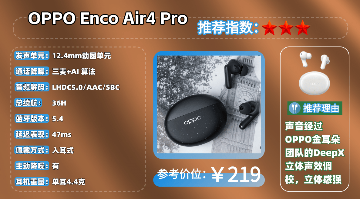 综合主流爆款8:O PPO E nco Air4 Pro蓝牙耳机