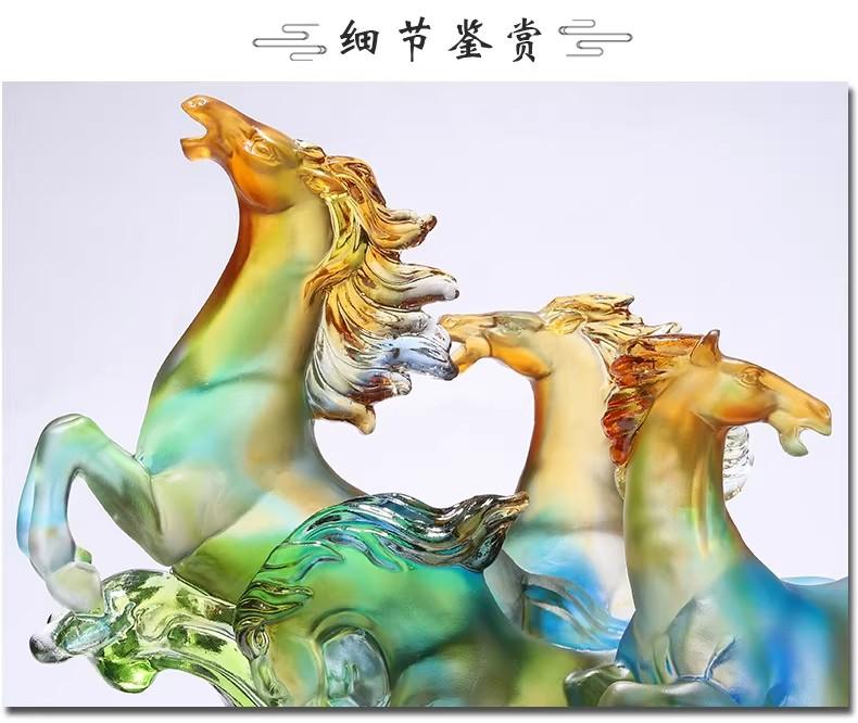 也正是因为这复杂的制作工艺,每一件古法琉璃八骏马摆件都是独一无二的存在,世间再难寻到两件一模一样的作品。它们不仅是工艺品,更是匠人们的艺术结晶,承载着千年传承的琉璃制作技艺,散发着独特的艺术魅力 。