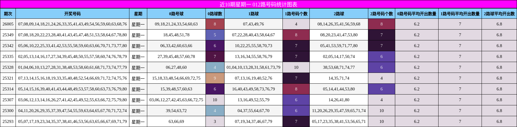 012路分析:2路号码强势回归,0路与1路均衡布局