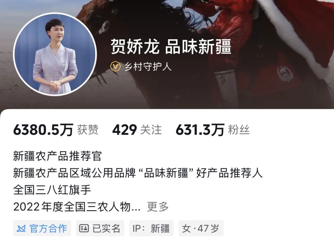 其最近一条微信朋友圈显示,1月6日她还在转发“贺娇龙品味新疆”账号的视频,并配文“不是所有坚持都能抵御岁月,但若为热爱,便所向披靡”。