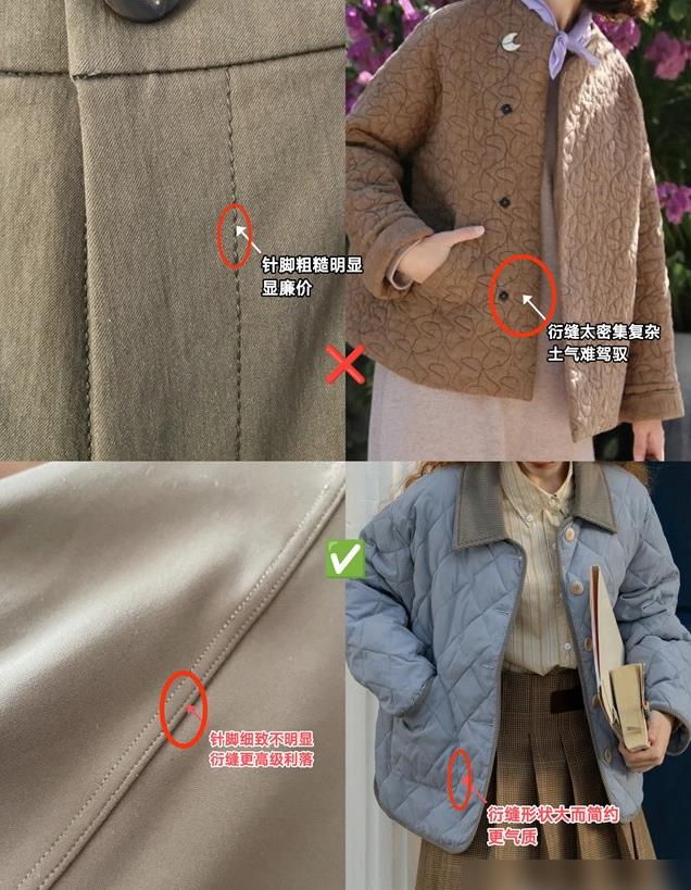 “奶奶棉衣”的设计其实是经过绗缝设计后的,它和一般外套没有区别,但是避免出现臃肿感,所以在不同部位进行了不同的填充量,在容易出现臃肿感的部位填充量进行了适当减少,而在比较少出现臃肿感的部位进行了增多,这样整个外套就显得时尚又不会让人觉得臃肿。
