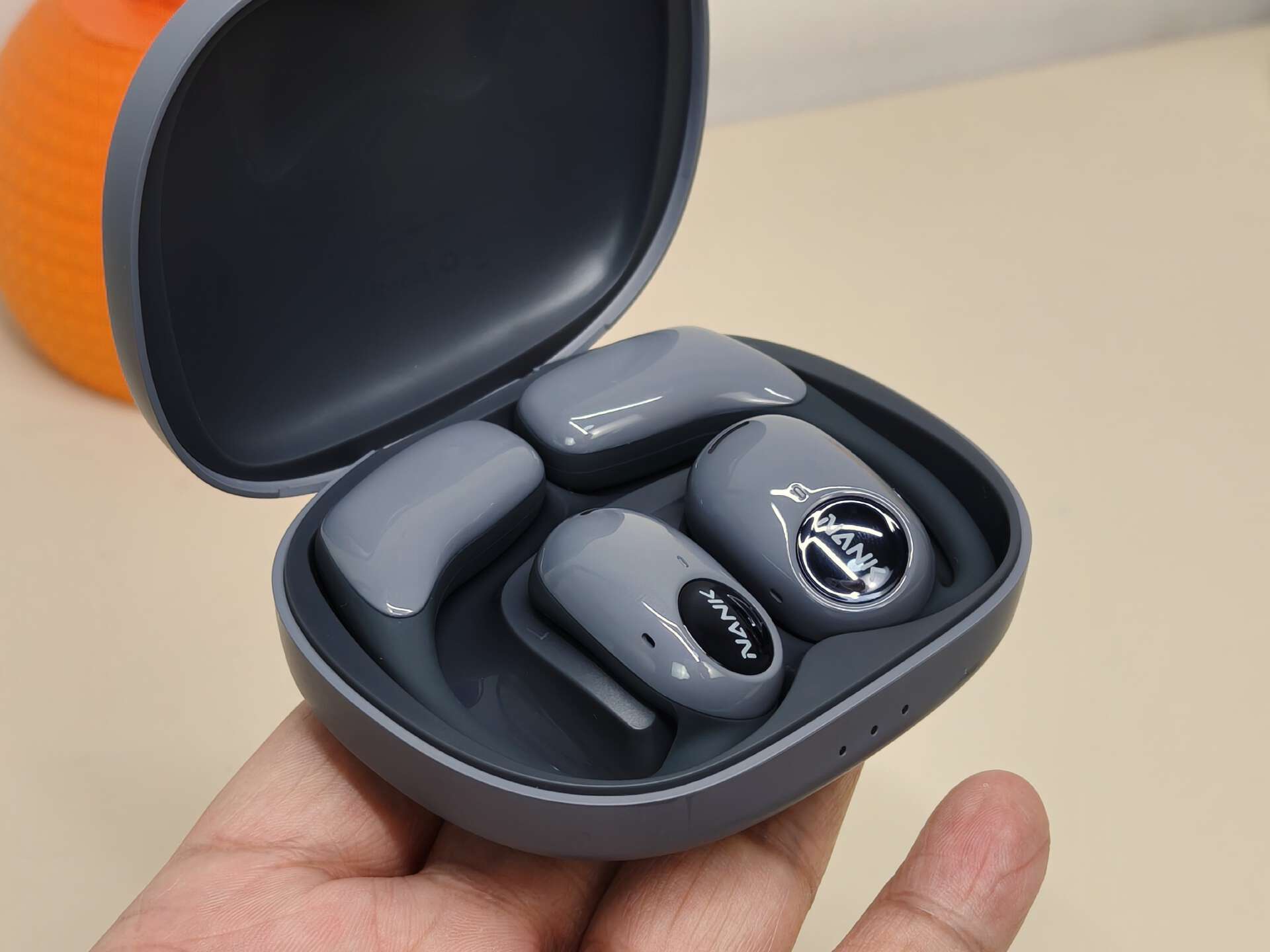 这款耳机外观设计别具一格,其充电仓采用类似太空舱的造型,既显精致又富有科技感,手持时具有很高辨识度。