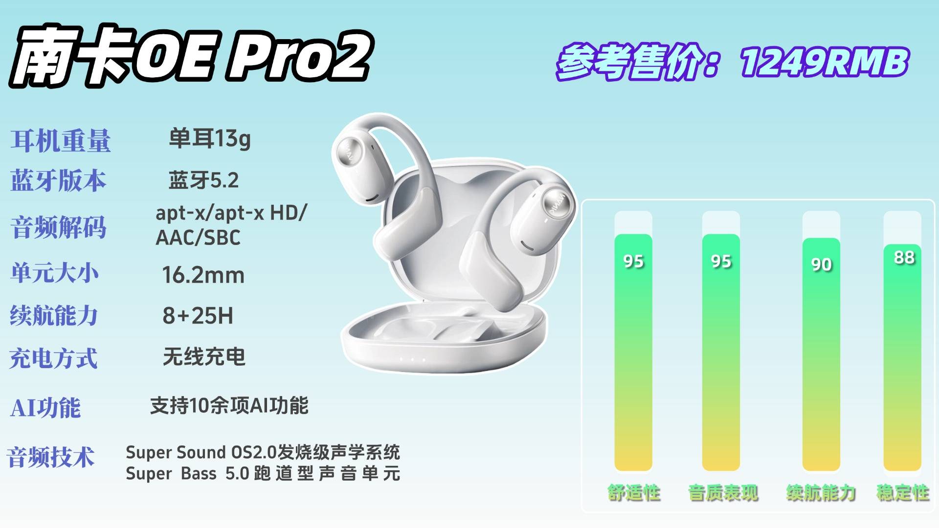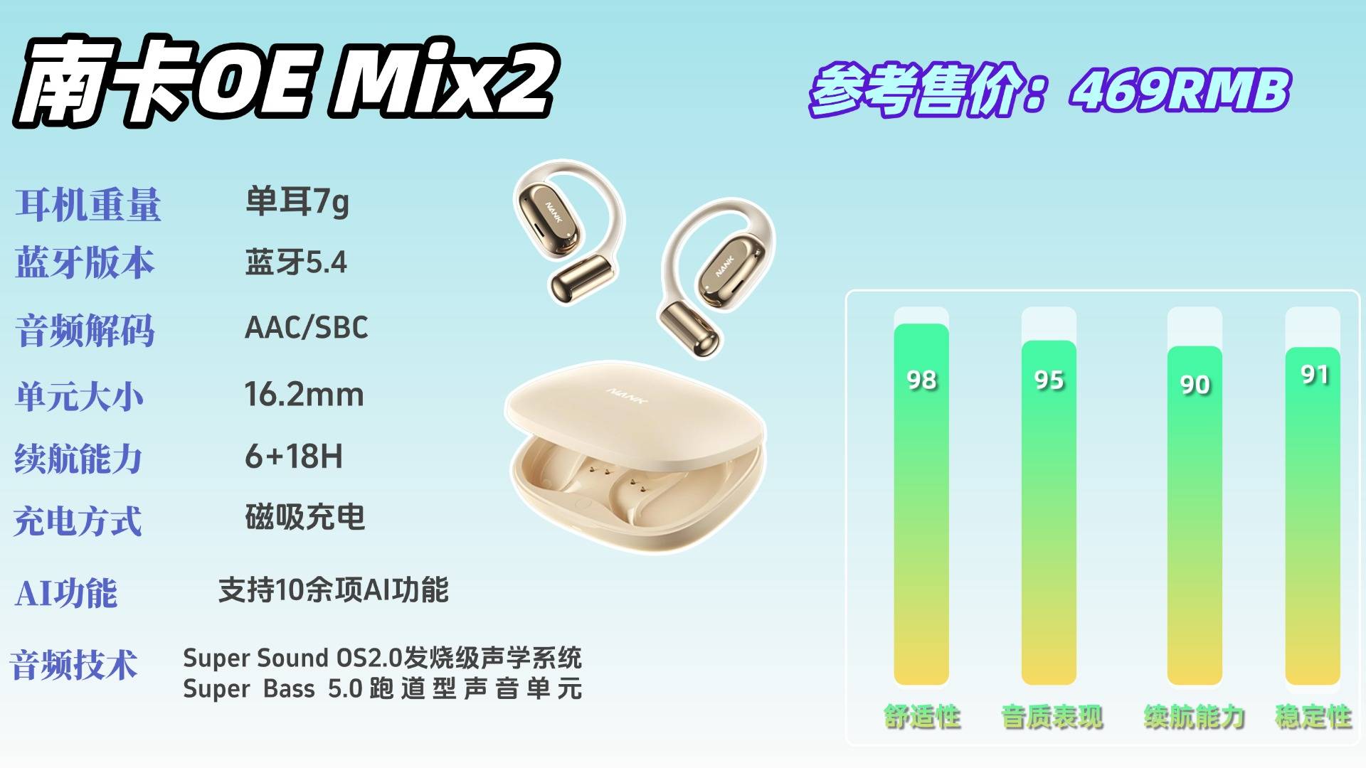 目前市场上多数开放式耳机在佩戴舒适性和声音品质方面仍有明显短板,而南卡OE Mix2凭借其首创的软硬件协同声学方案,以及品牌十多年来的技术沉淀,持续在舒适体验与音频表现两大关键领域占据行业前列。