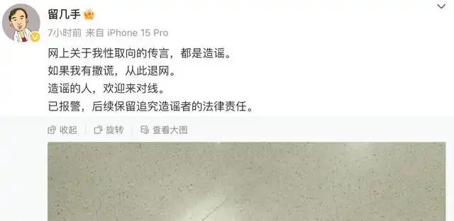 12月21日,留几手刘爽发文回应性取向传言。内容如下: