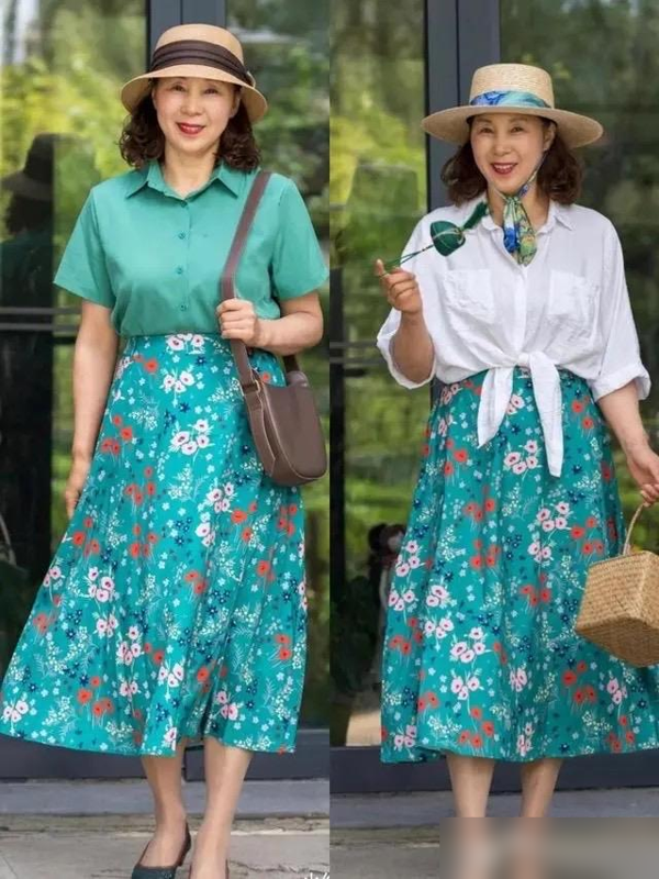 花裙子也不是不能穿,但得“素雅”。2025年的时尚圈早就淘汰了大朵浓艳的印花,转而推崇小碎花、几何纹这些清爽图案。比如浅蓝底的小雏菊半裙,配件白色针织开衫,再系条同色系丝巾当腰带,既保留了女人味,又避开了“阿姨感”。