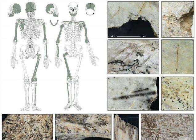 研究小组利用现代方法,发现了 36 块骨头碎片,这些碎片显示出尸体在死后立即被解剖的迹象。头骨碎片上的切割痕迹表明,在长骨被砸碎以取出骨髓之前,肌肉附着物和头皮已被移除。第一作者、加泰罗尼亚人类古生态和社会进化研究所的 Francesc Marginedas 解释说:“切割痕迹的位置和频率,以及有针对性的骨头砸碎,毫无疑问,他们的目的是从死者身上提取营养成分。”
