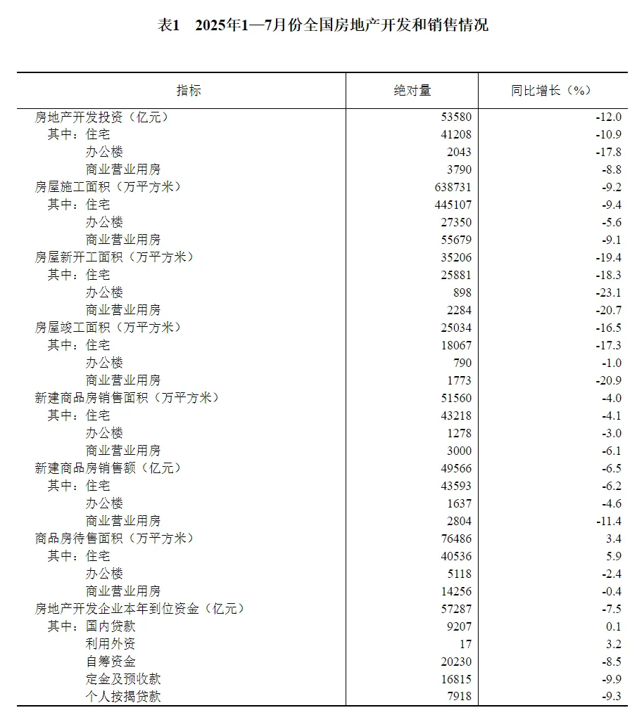 国统局的数据显示,今年1-7月份,全国房地产开发投资同比下降12%,新房商品房销售面积、销售金额也都是在下滑,短期内根本看不到回暖的迹象。