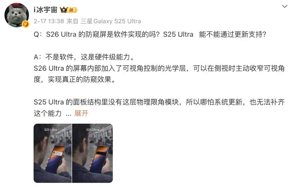 Ultra版还支持全新的隐私防窥屏功能,这项功能能够在电梯、公交、地铁等公共交通工具或其他人流密集的公共场合中自动开启。