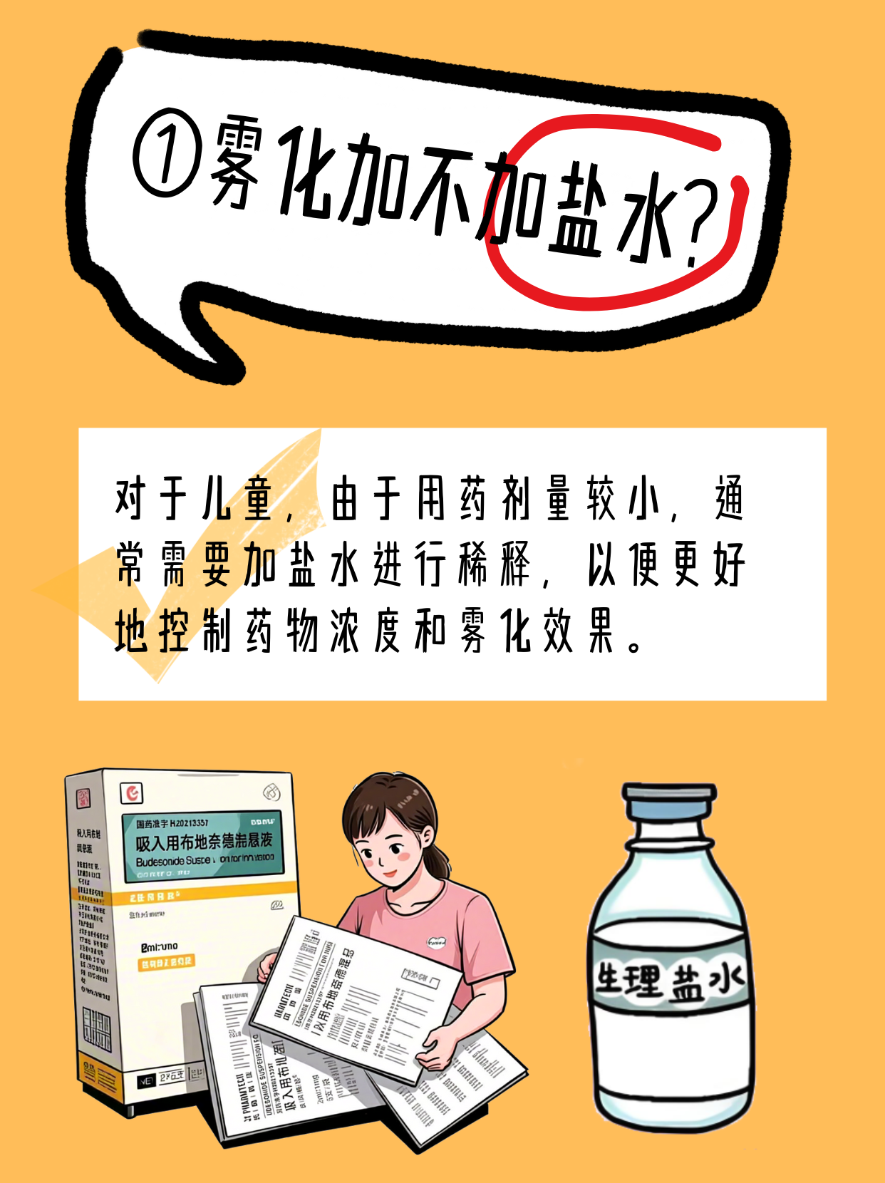 对于儿童,由于用药剂量较小,通常需要加盐水进行稀释,以便更好地控制药物浓度和雾化效果。