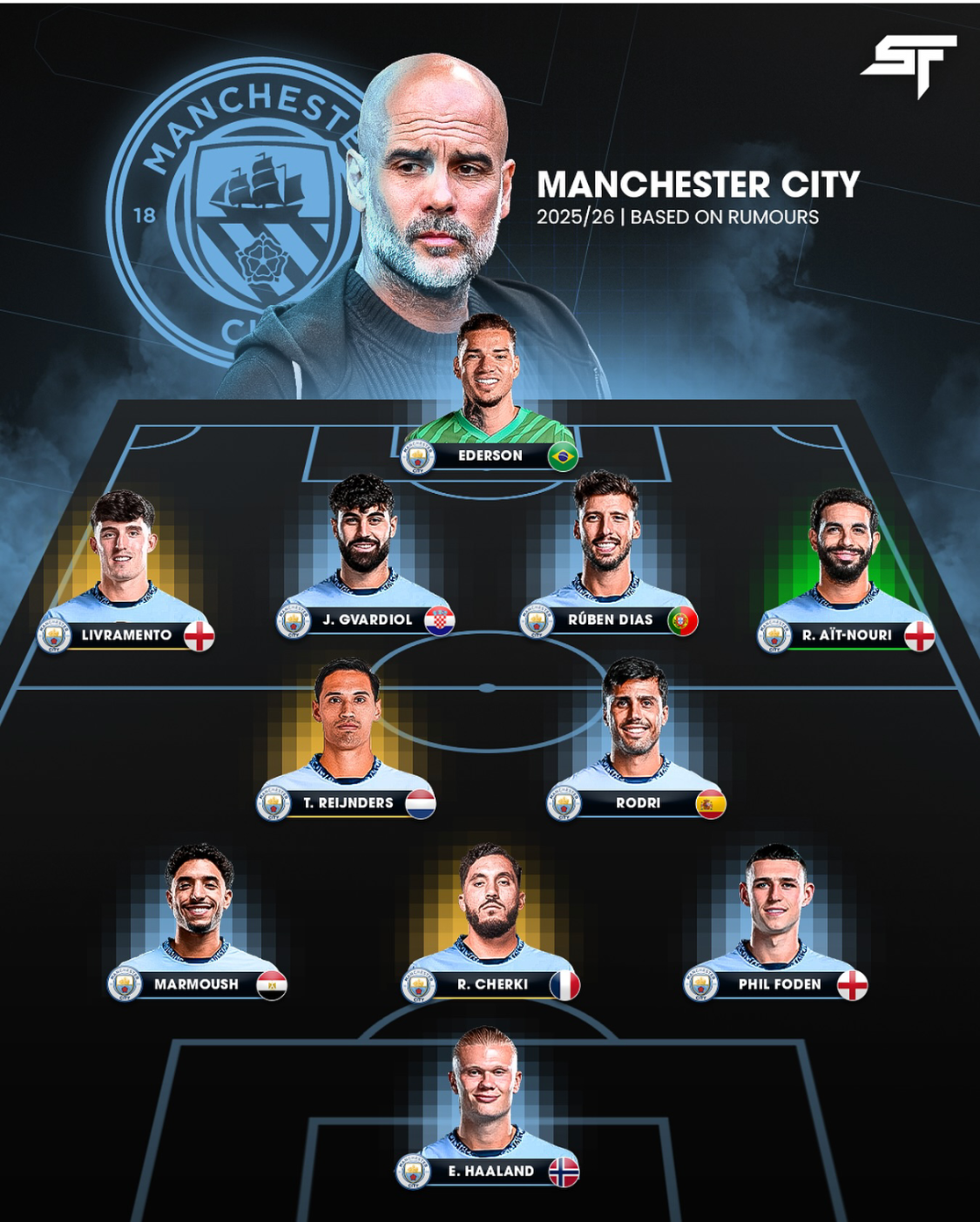 近日,外媒“Switch Football”就列出了曼城在下赛季可能排出的首发阵容,四位新援纷纷在列,足以见出曼城试图东山再起的雄心,具体如下: 门将:埃德森 后卫:艾特-努里、鲁本-迪亚斯、格瓦迪奥尔、利夫拉门托 后腰:罗德里、赖因德斯 前场:福登、谢尔基、马尔穆什 中锋:哈兰德