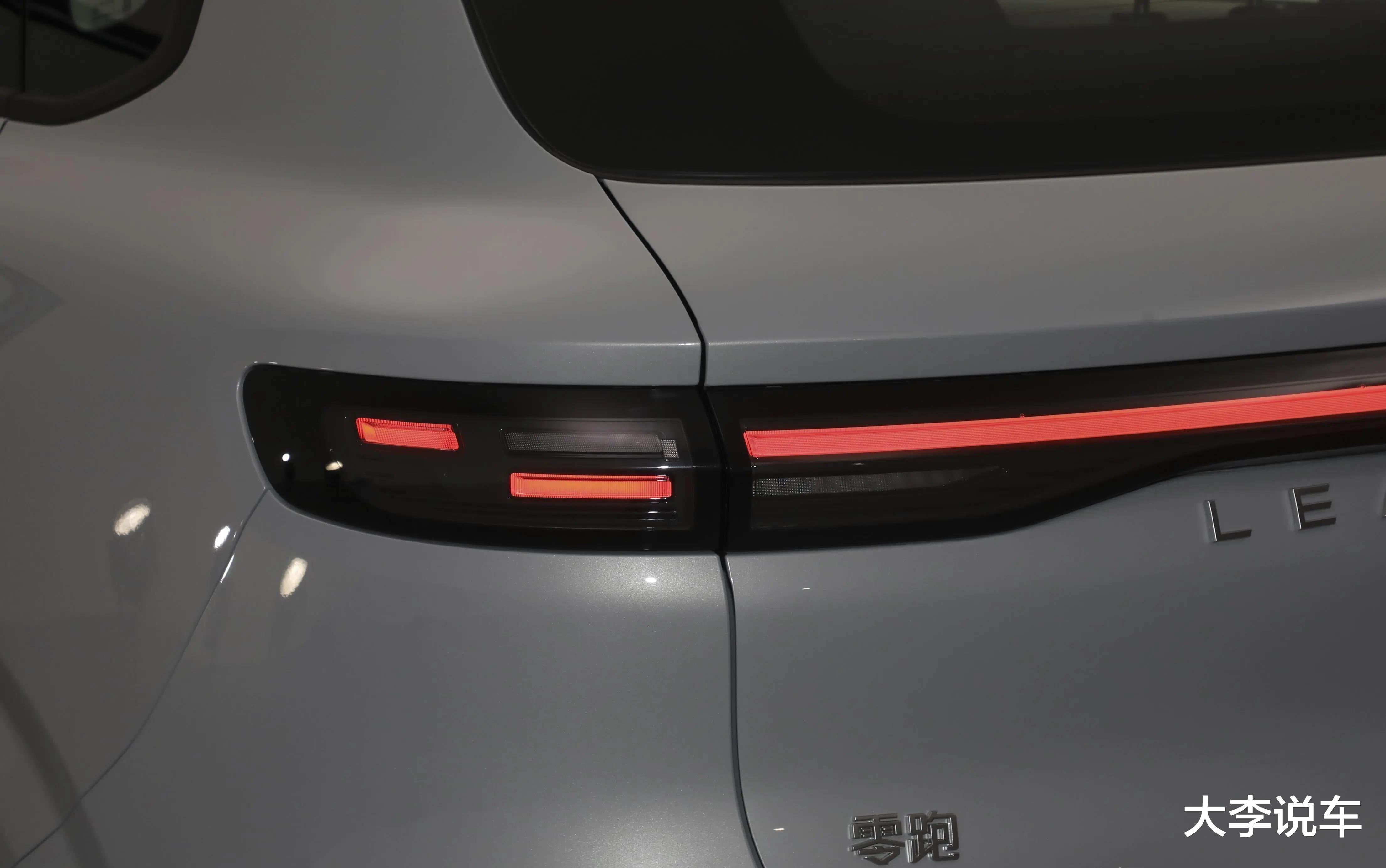 外观设计方面,零跑B10延续了品牌家族式设计风格,在此基础上对细节进行了精细调整。车头采用贯穿式灯带,并在灯带两端巧妙地引入了三点式布局,同时还首次使用了分体式头灯,营造出更为独特的视觉效果。车头中央配备的贯穿式线条以及前包围处的黑色装饰件,进一步凸显了整车的运动气息。而尾部设计上,零跑品牌的英文标识“LEAPMOTOR”位于尾门正中,与车头形成呼应,整体造型简洁大气。