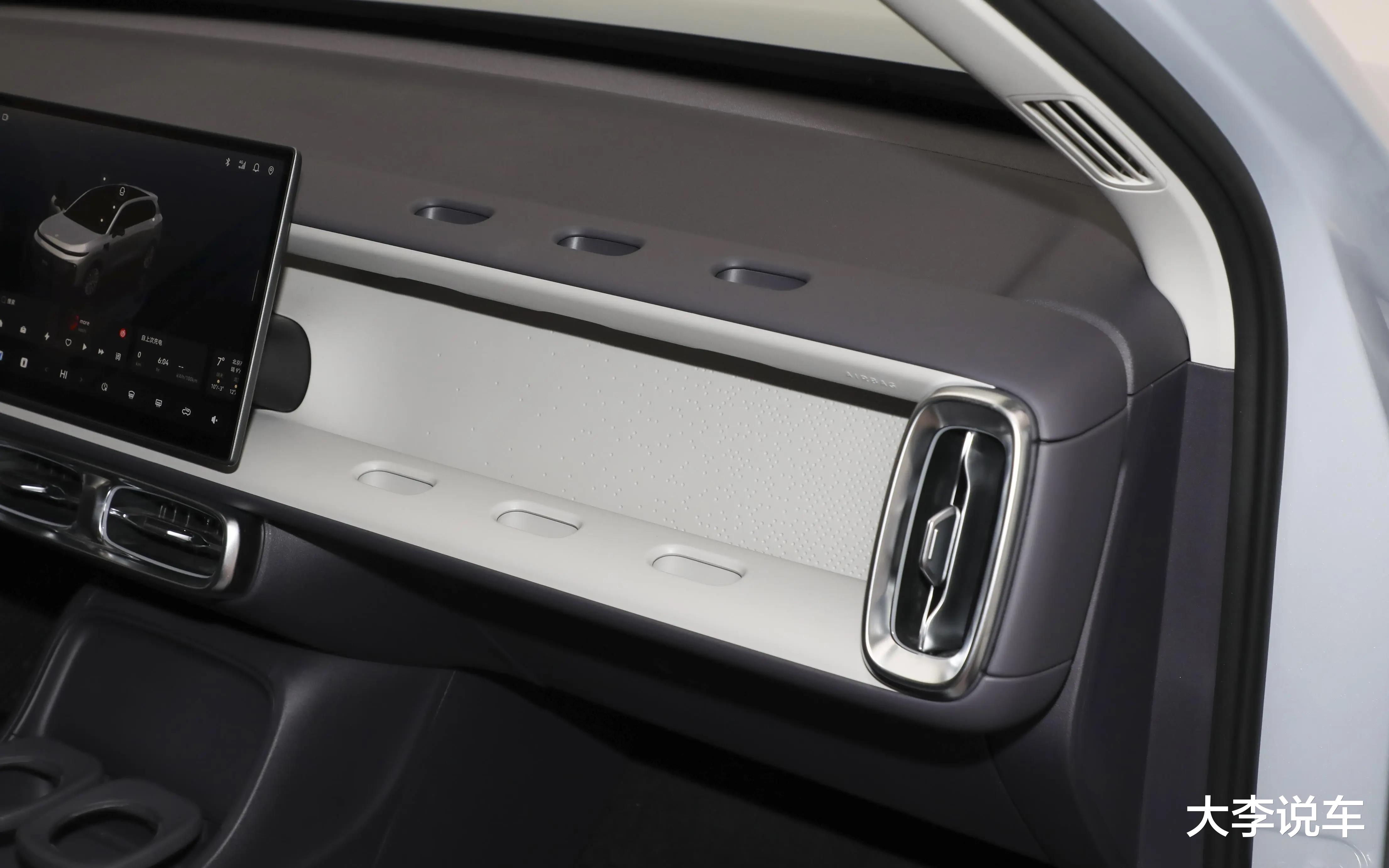中控台区域没有配备任何实体按键,所有操作均通过触控屏完成;而方向盘则采用了内外双拼色设计的双辐式造型,两侧设置了多功能按键和滚轮,配合怀挡式换挡机构,整体操控体验简单直观。副仪表台采用悬浮式设计,上部专为手机放置预留了区域,且支持单侧无线充电;下方则设计了开放式储物空间及隐藏式杯架。在副驾前方,还特别设计了6个“魔术拓展孔”,可根据个人需求安装手机支架、折叠桌板等配件,未来官方及第三方配件有望不断丰富。