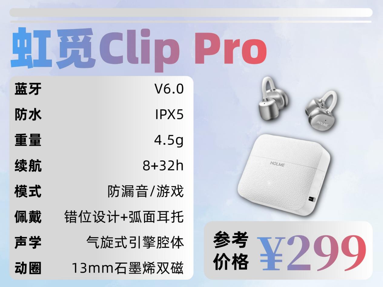 虹觅Clip Pro极为全能,性价比出众。不仅佩戴舒适,音质方面也出色;而且防漏音模式能抵消80%漏音。