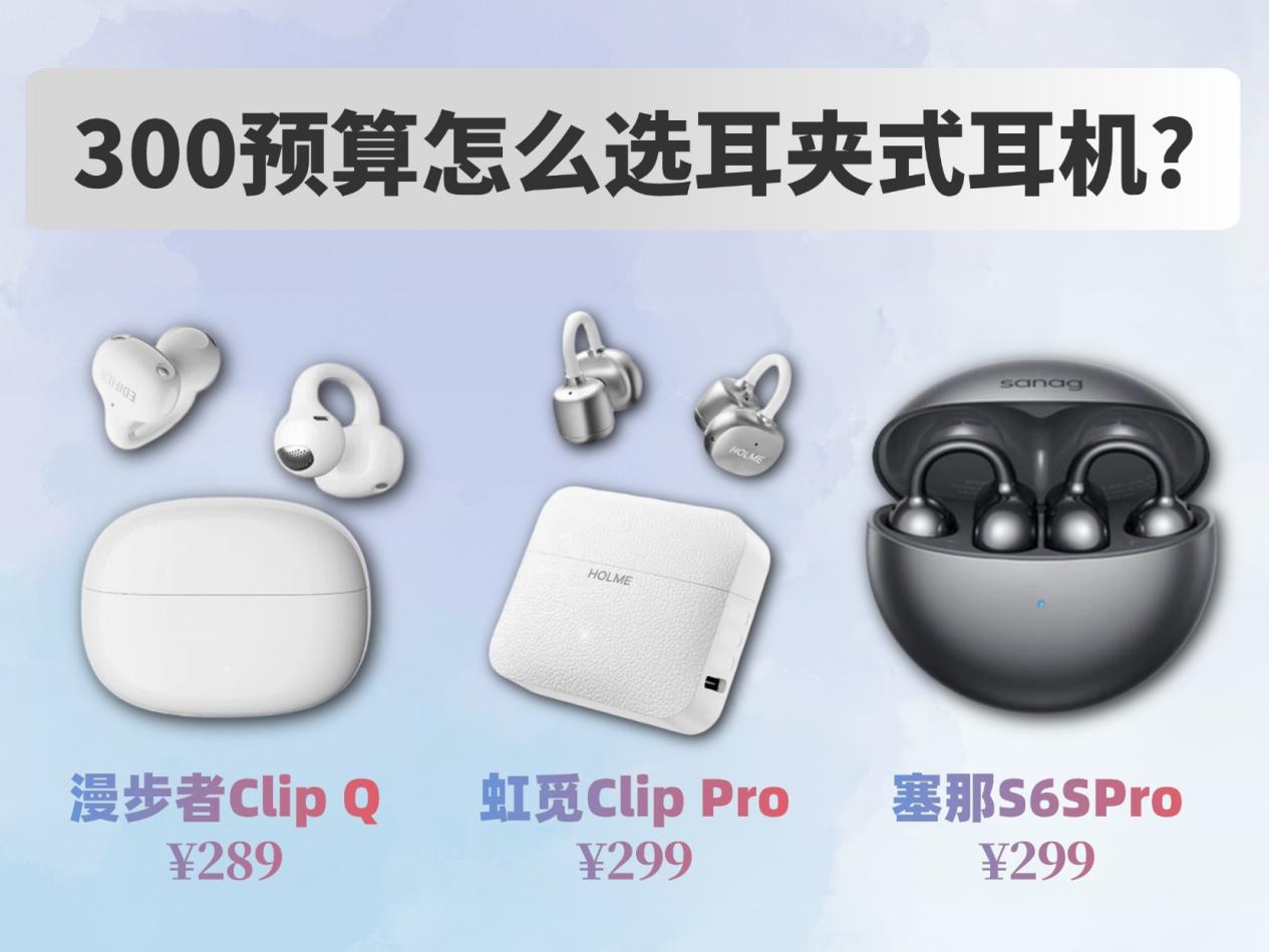 如今耳夹式耳机正在逐渐成为主流,慢慢替代传统入耳式耳机。大家日常使用耳机的频率越来越高,开放式设计凭借长时间佩戴更舒适的特点迅速走红,各大品牌也接连推出新款机型。面对市面上种类繁多的产品,很多人都不知道该怎么挑选。作为一名耳机发烧友,今天我就带来三款热门耳夹式耳机的实测对比,分别是虹觅 Clip Pro、塞那 S6S Pro、漫步者 Comfo Clip Q。