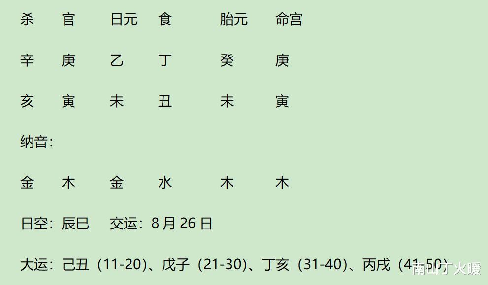 细看此命局的话,丑未相冲而杀旺,未虽为财但未中乙木夺己偏财。