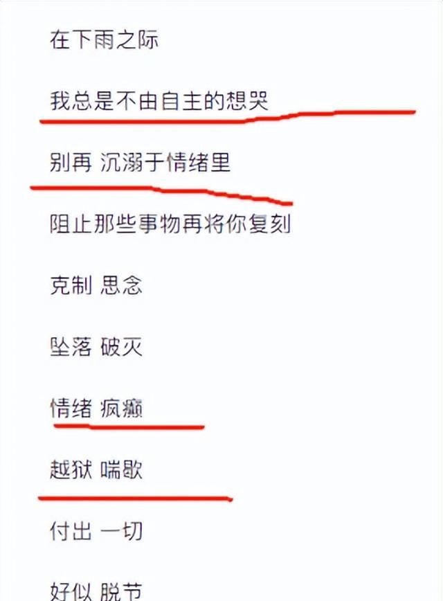 可想而知,她心里也是很不好受的。这一点从她自己作词的歌里就能瞧出点端倪。