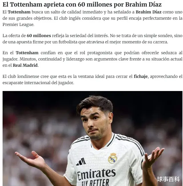 热刺相信,他们能为迪亚斯提供主力位置和核心角色,这将打动球员本人。出场时间、稳定性和领导地位,都是相比他在皇马目前处境更具吸引力的关键因素。热刺认为,现在是完成这笔签约的最佳时机,趁球员正在国际舞台上大放异彩。
