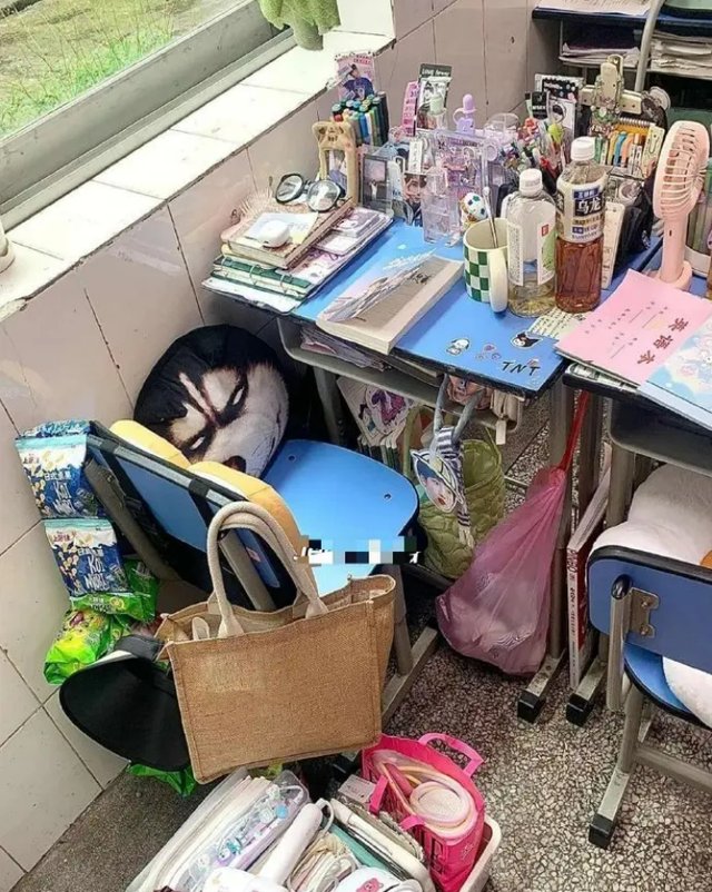 那么,当你看到这张“家居风”课桌时,会如何看待它?是个性表达的自由,还是学习迷失的隐喻?对此,你有什么想法?
