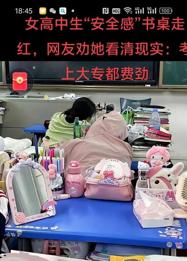 在高三这个紧绷的节点上,一张“家居风”课桌的照片意外走红,搅动了人们对学习与生活关系的讨论。这名高三女生的课桌上,明星周边、零食、不锈钢盆一应俱全,仿佛一个迷你杂货铺。她称这是“家的温馨感”,而网友们却不买账,有人评论“毫无学习欲望”,甚至冷嘲热讽地断言:“这样的学生可能连大专都考不上。”一张课桌照片,为何引发如此多的争议?