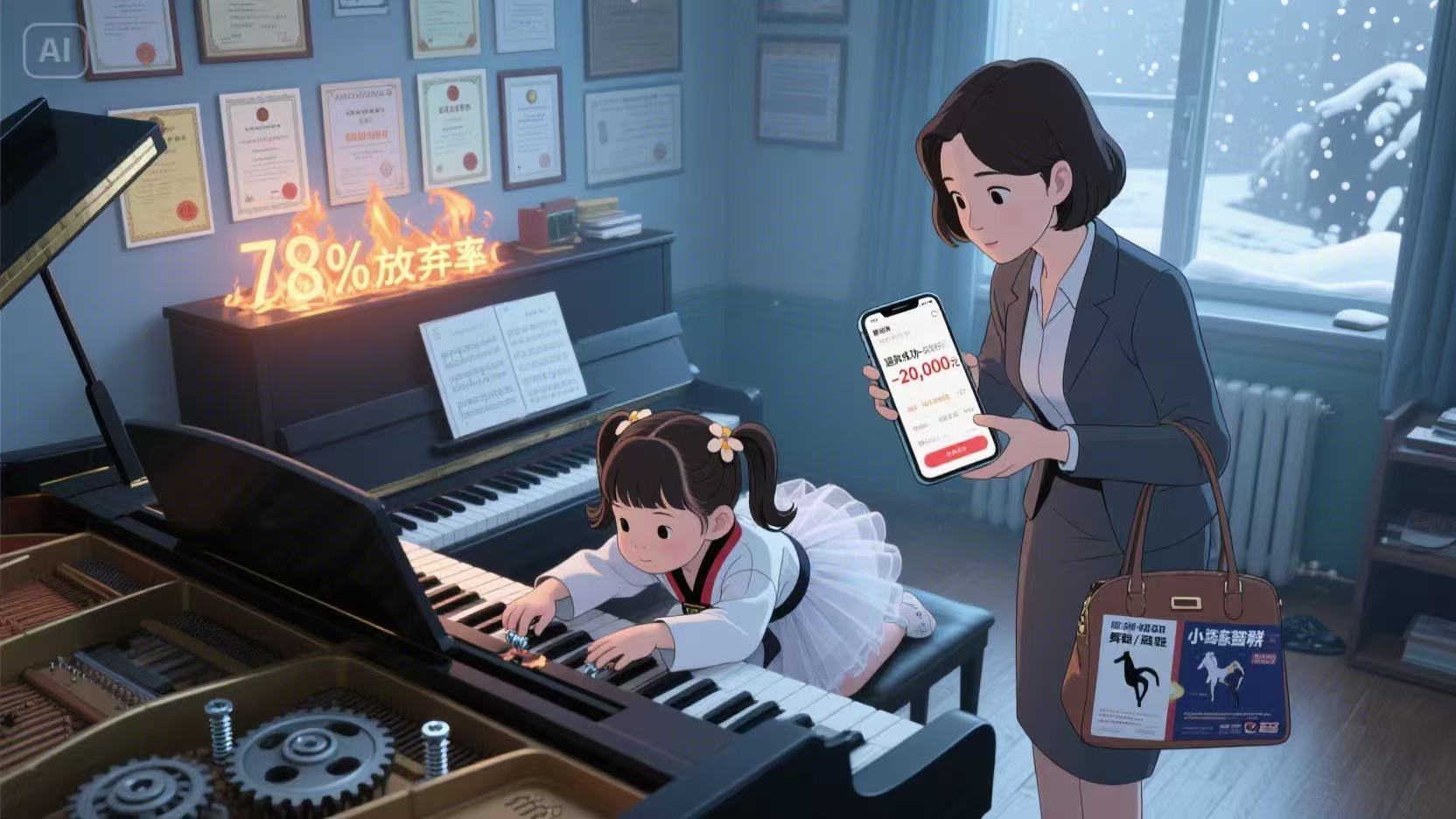 钢琴课监控器里,5岁的朵朵数完第38颗琴键螺丝后,妈妈终于退掉了2万元的年卡。中国家长年均兴趣班支出1.8万元,但78%的孩子三年后完全放弃。