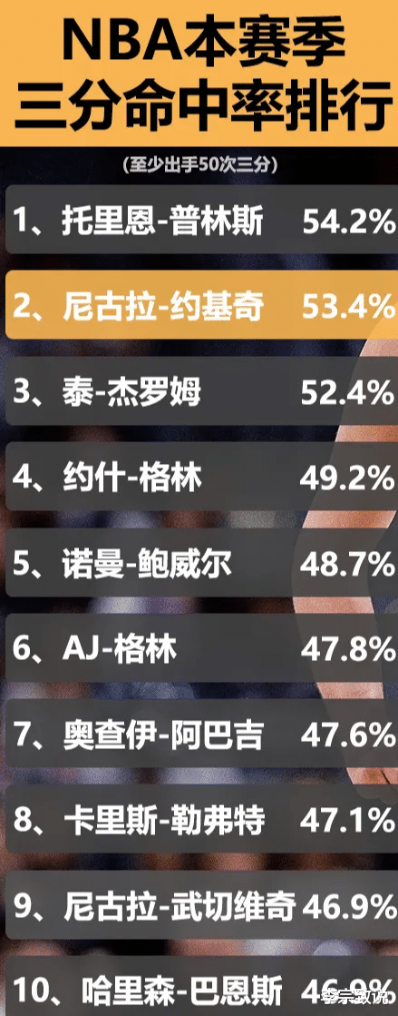 NBA本赛季三分命中率排行榜,库里无缘上榜,约老师你想干嘛