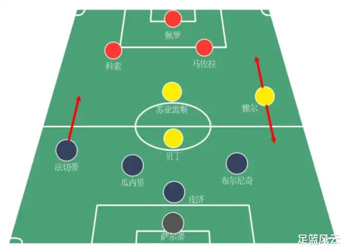 不过这套阵型也并不是说完美无缺,大家看图片也能知道,如果球队要有链式防守,中场控制力是比较差的,会显得“重守轻攻”,球队的推进、渗透会成为一个大问题。
