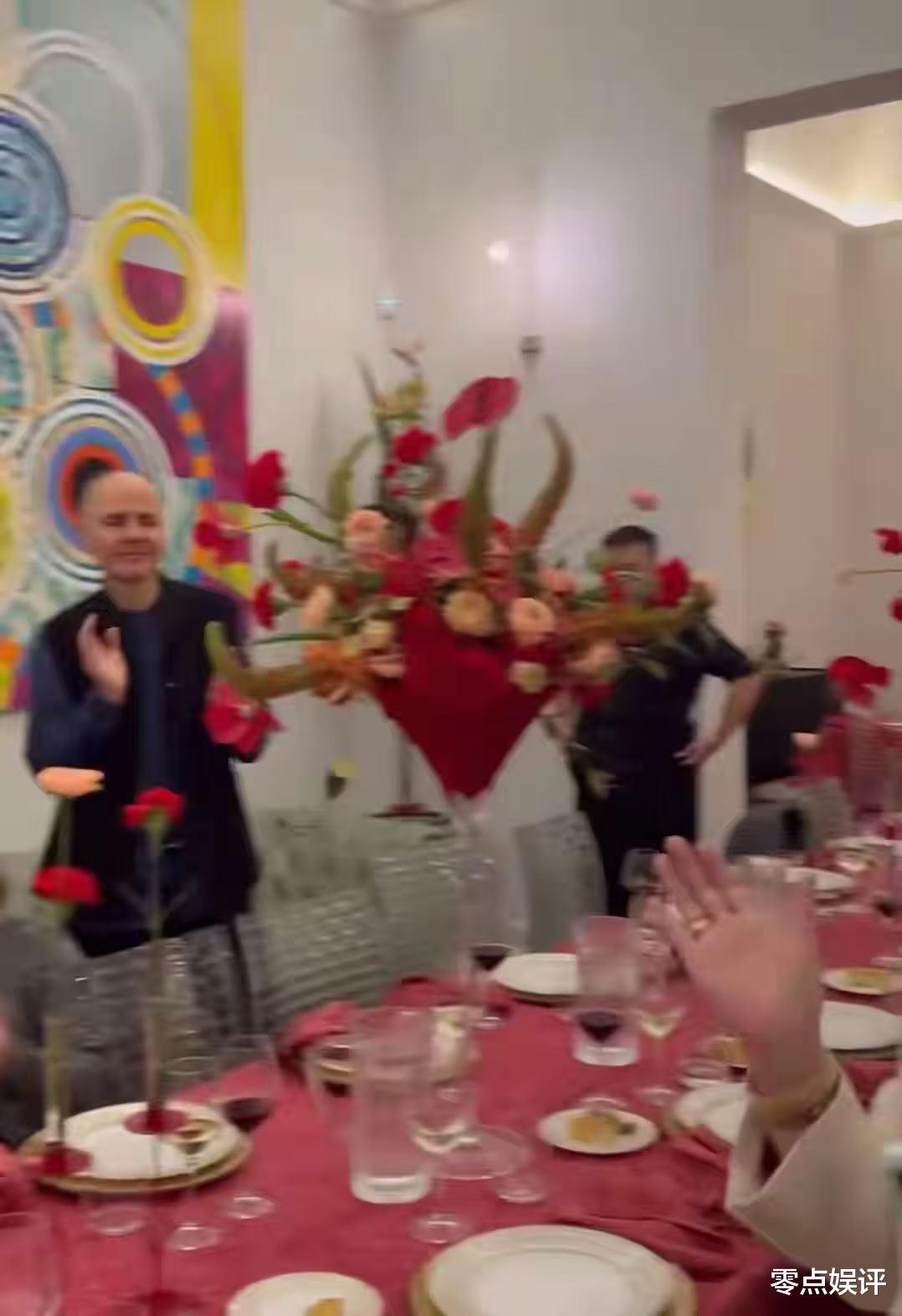 除了饺子,餐桌上还摆满了红酒、牛排等精致佳肴,长长的餐桌摆满了美食,不难推测,此次聚会亲朋好友来了几十人。每张桌子都精心装饰着鲜花,现场还有特邀的大厨精心烹饪,服务员周到服务,整个场景尽显奢华,让人不禁感叹金星生活的高品质。