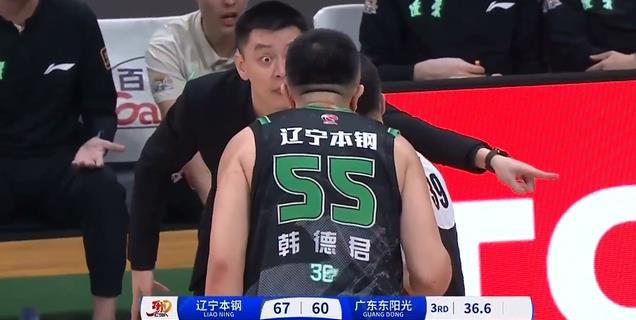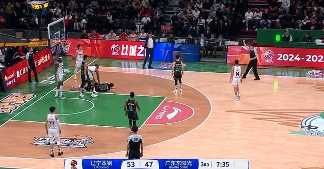 第二节末尾,辽篮靠着玄冥二老连续拿到两个前场板二次进攻全部打进,杜指导喊暂停。回来后杜润旺在罚球线附近大到小连砍4分,半场比赛结束,辽篮47比43暂时领先广东。