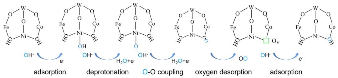 OOH−中间体脱氢释放O,金属阳离子还原至初始价态,完成催化循环