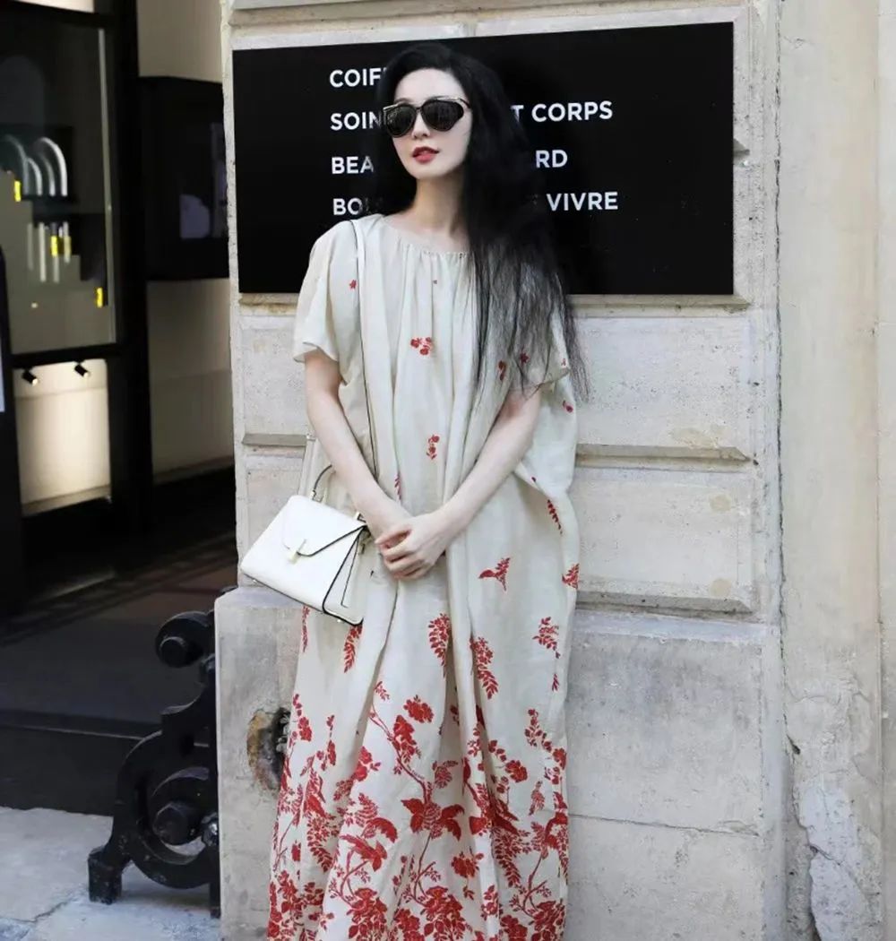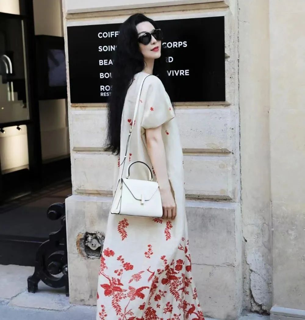 相同的服饰穿在气质形象完全不同的两个人身上,意外彰显出了超越裙子本身的美,设计出这条礼裙的人估计都高兴坏了。从画面中可以看到,两位女神都穿上了某品牌家的一条青花红系列长裙,长裙是宽松蝙蝠衫款式,裙身主要是米白色系为主,裙摆有大篇幅红色印花设计,从裙尾由多到少过渡到上半身,营造出了一种特别的层次感,创意十足。范冰冰将一头黑长直秀发披散在了肩头,戴上了一副墨镜,还背着一个白色的方块包包,女王气场全开,洋气又时髦,女神范儿十足,完美彰显了范冰冰的时尚感,美得很高级。
