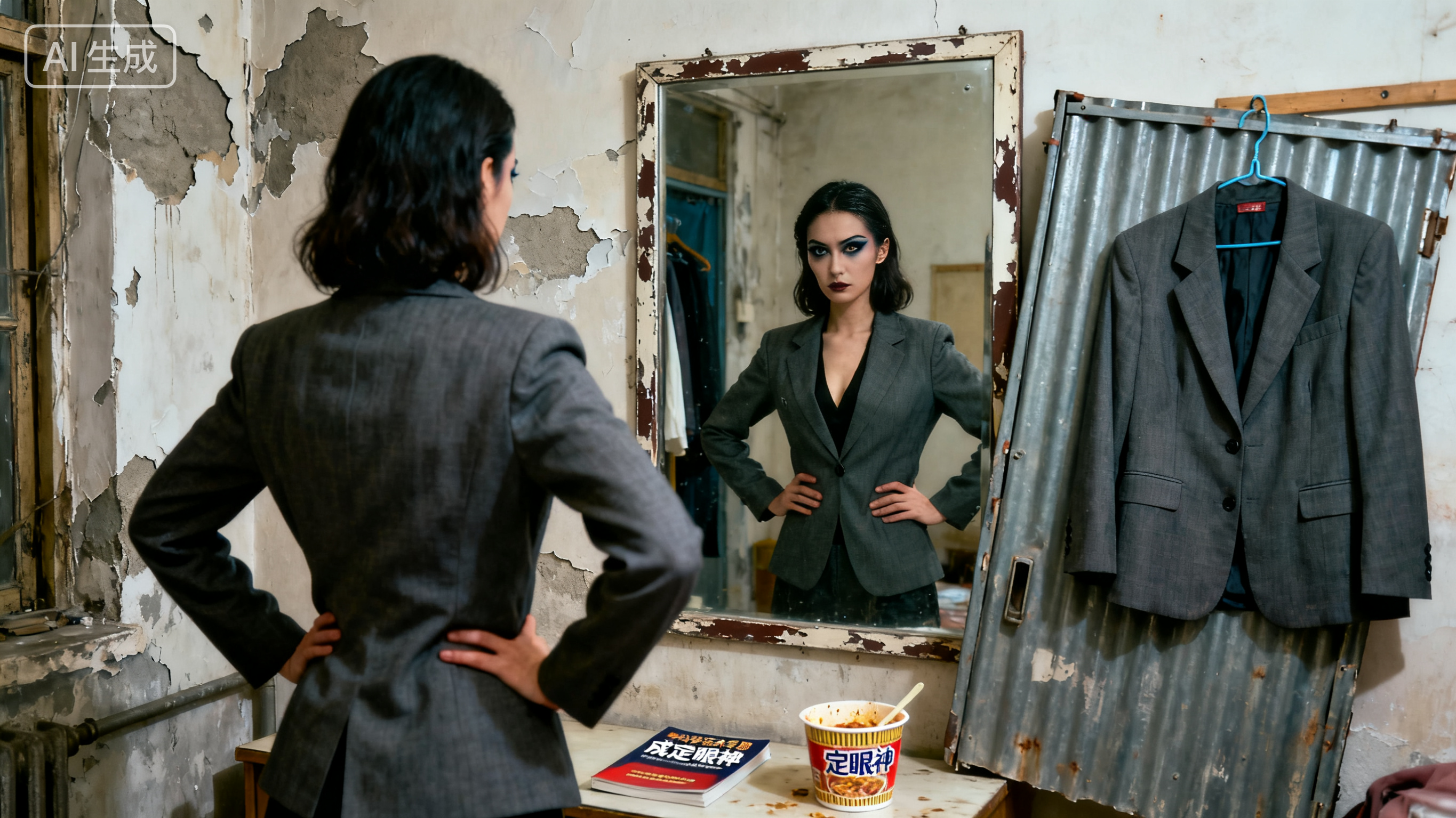一屋子全是 “统一配置” 的大姐:清一色的利落短发,熨得笔挺的黑色小西装,脚上踩著恨天高,脸上画着精致却僵硬的妆容,双手交叉放在胸前,眼神里透着一股 “我已手握财富密码” 的自信!