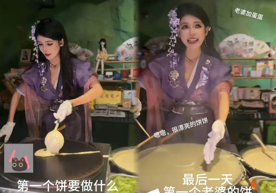 但是没有想到,狗头萝莉一下子坚持了接近两年的时间,而且狗头萝莉的服务态度特别好,价格也非常的便宜,再加上出摊的时候都会带来一些好看的穿搭,这种与众不同的煎饼摊,吸引了很多的网友前往现场。最近狗头萝莉在嘉兴摆摊卖煎饼结束了,每一次结束都会拍下制作最后一张饼的视频,这次就晒出了制作煎饼的全部过程,有网友发现,狗头萝莉制作煎饼真的是非常的熟练,技术也越来越好了,被很多的网友称赞。